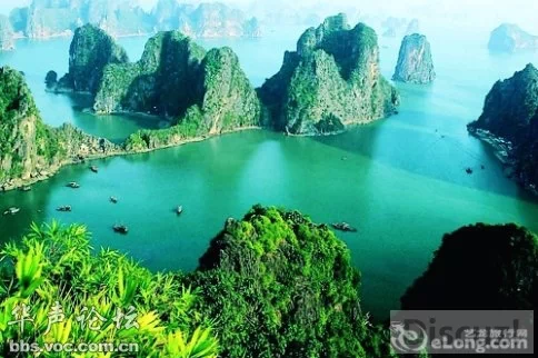 【下龙湾】:海上桂林,世界自然遗产,世界自然八大奇迹之一。越南语作Vinh Ha Long(意为「龙下海之处」)。越南北部广宁省鸿基市附近东京湾西北部海岸的海湾。位于海防东南方164公里(102哩)处,面积1,500平方公里(580平方哩),包含约3,000个岩石岛屿和土岛,典型形式为伸出海面的锯齿状石灰岩柱,还有一些洞穴和洞窟,共同形成一幅异国风味的如画景致。水域和热带森林中可见各种不同的海生及陆生哺乳动物、鳄、鱼类和鸟类。下龙湾位于北部湾西部,离越南首都河内150公里。1994年,联合国教科文组织将下龙湾作为自然遗产,列入《世界遗产名录》.下龙湾是越南北方广宁省的一个海湾,风光秀丽迷人,闻名遐迩。风景区共分为东、西、南3个小湾。因其景色酷似中国的桂林山水,因此被称为“海上桂林”。